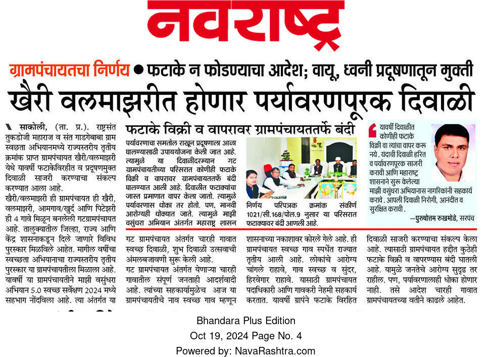 खैरी वलमाझरीत पर्यावरण पूरक दिवाळी – एक शाश्वत आणि सुरक्षित पर्यावरणाची दिशा!